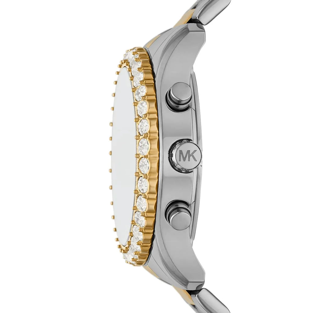 berkley chronograph silver dial two tone steel strap watch for women - mk7415
