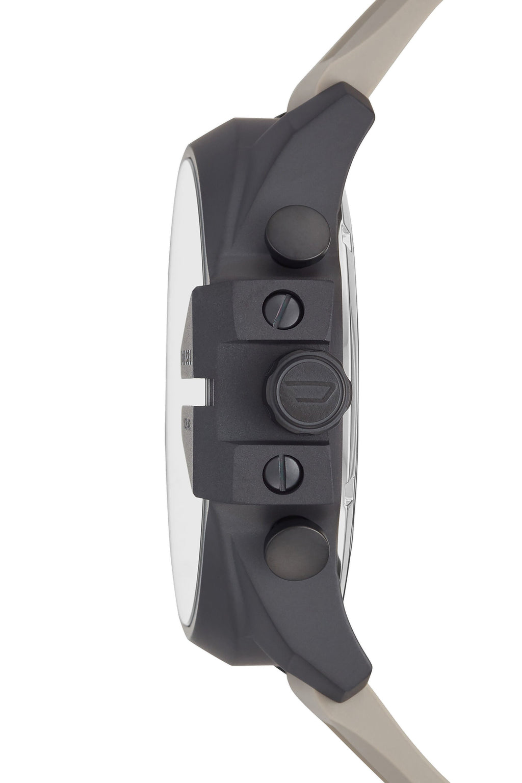 This Diesel Mega Chief watch features a matte gray dial with stick indexes, analog movement and gray silicone strap.
